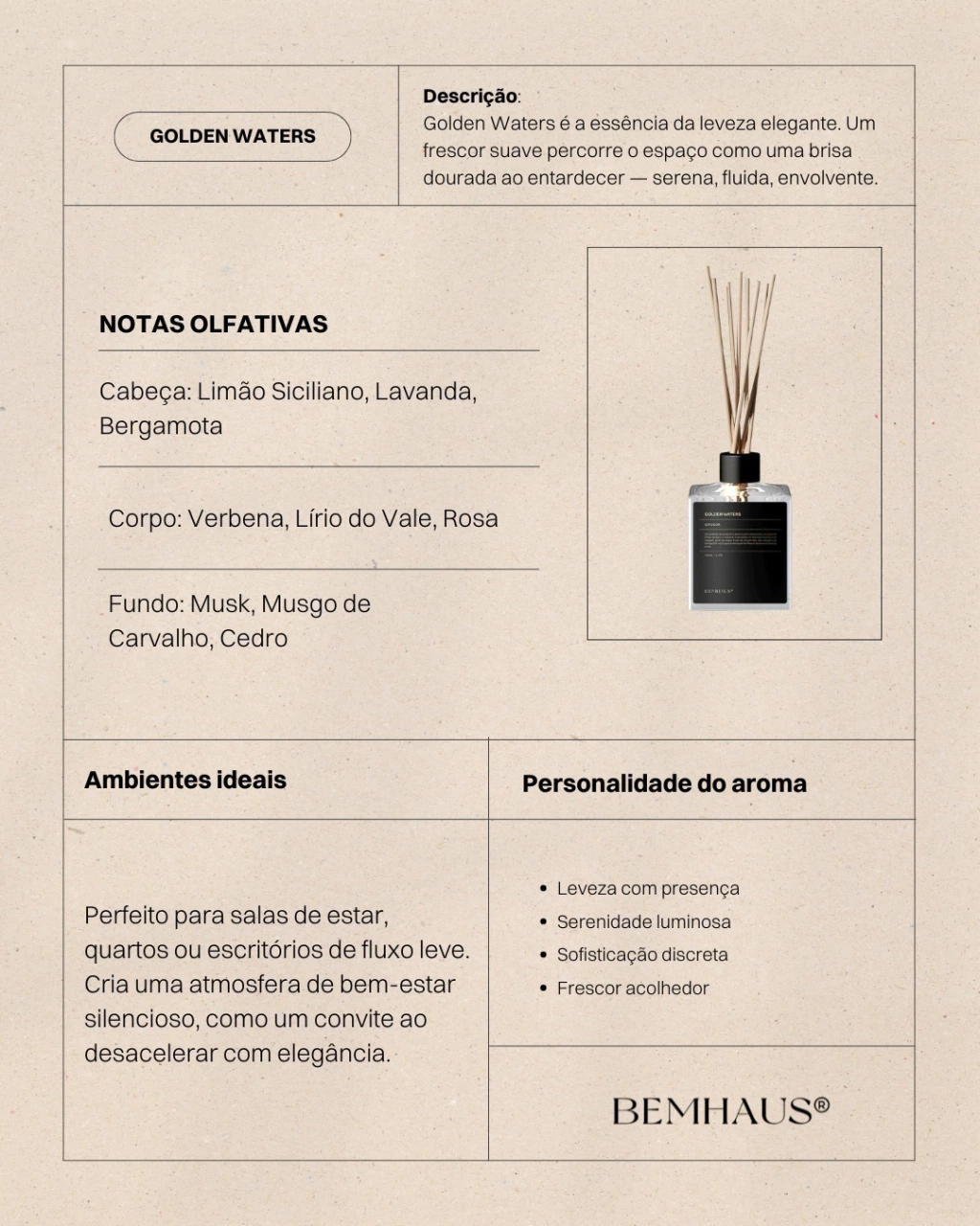 Perfeito para perfumar ambientes de forma leve e prolongada.
