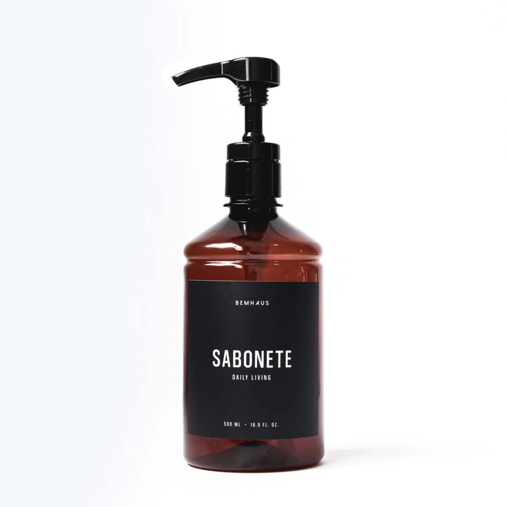 Rótulo "Sabonete" com acabamento fosco que suporta contato com a água.