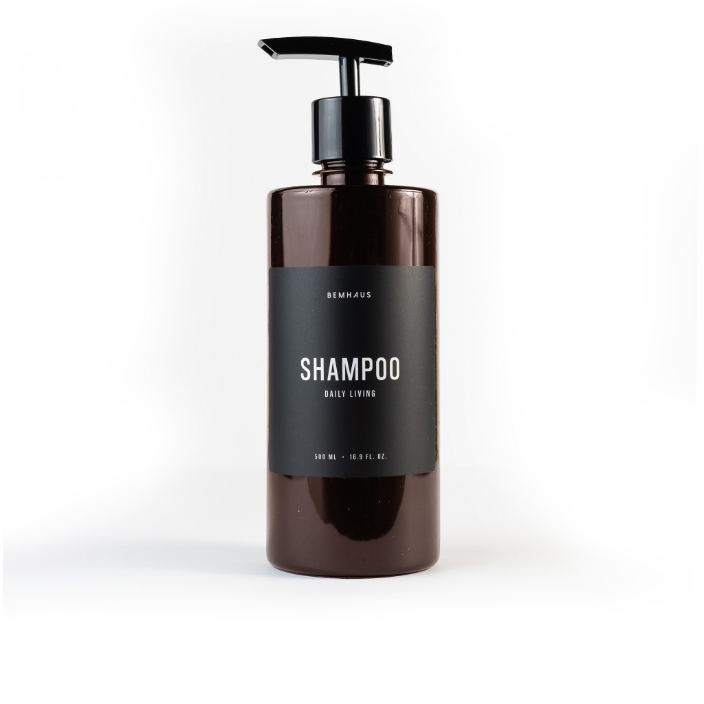 Este frasco é produzido com plástico âmbar resistente, escuro e reutilizável, perfeito para armazenamento de shampoo.