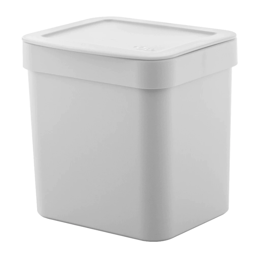 Possui tampa que esconde o saco de lixo e aro removível, facilitando a limpeza e a troca. Fabricada em polipropileno texturizado: resistente, flexível e fácil de higienizar.